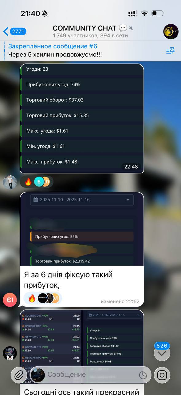 Подобається формат: немає продажів, тиску чи обману. Просто живе комʼюніті, де кожен ділиться досвідом. За два місяці в каналі навчився краще керувати ризиками й перестав зливати депозит через емоції.